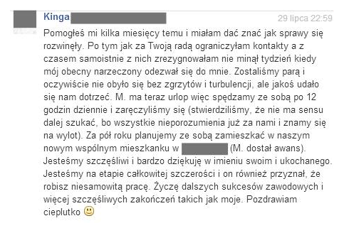 od 2008 roku. Specjalizuje się w konsultacjach dotyczących naprawiania związku i odzyskiwania byłego partnera.