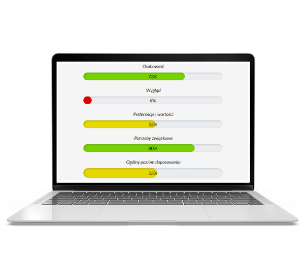 Profesjonalny test, który na wykresie pokaże Ci, na jakim poziomie są poszczególne elementy dopasowania z Twoim partnerem.
