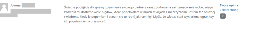 dostęp do kursu online ‘Czy jesteś z właściwą osobą?” + profesjonalnego testu dopasowania, który na wykresach pokaże Ci szczegółowy poziom dopasowania z Twoim partnerem.