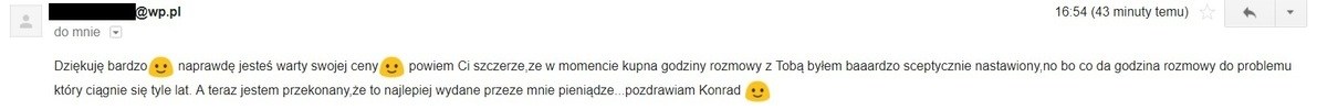 I wtedy zrozumiałem, że nie mogę tak dłużej ciągnąć, bo sam byłem już przytłoczony ilością pracy, a do tego jeszcze miałem tą świadomość, że same konsultacje ze mną to nie jest najbardziej efektywna forma pomocy.